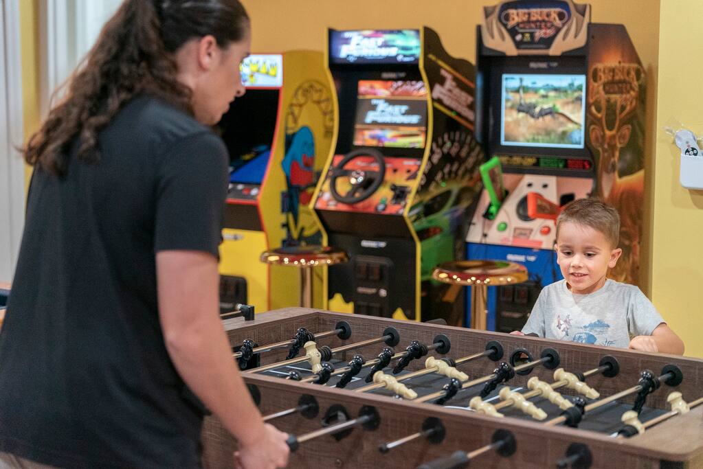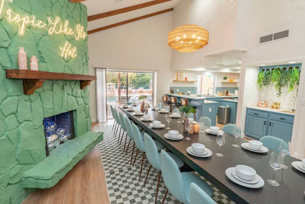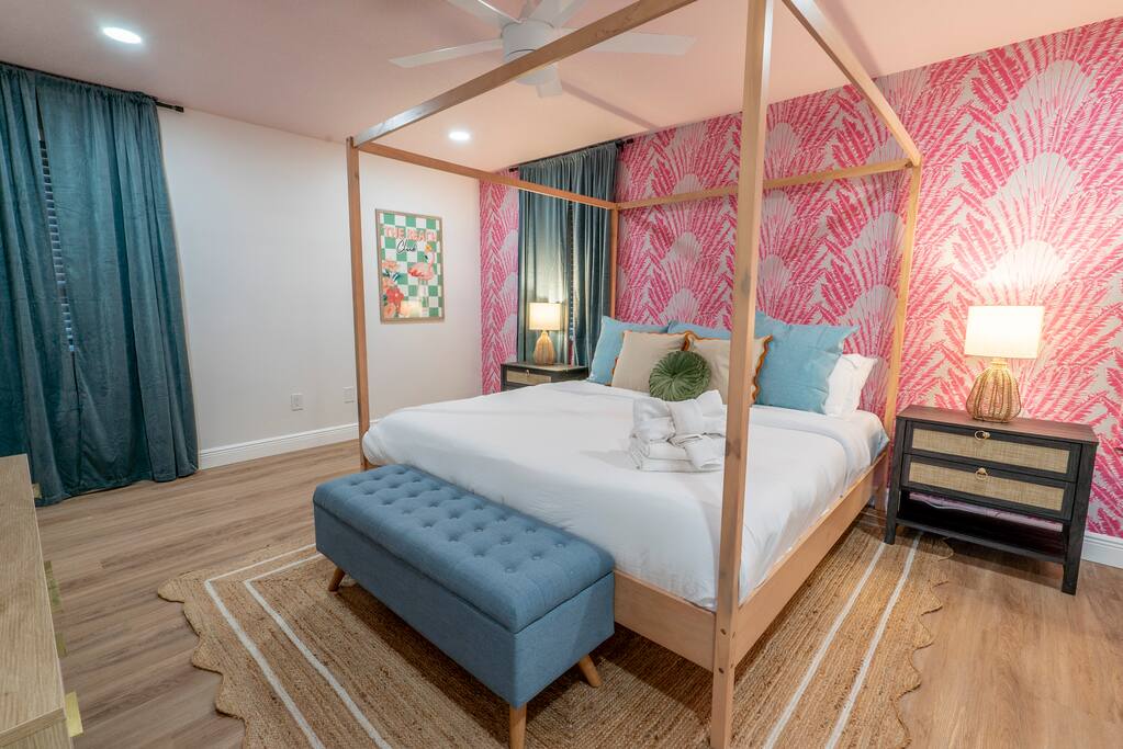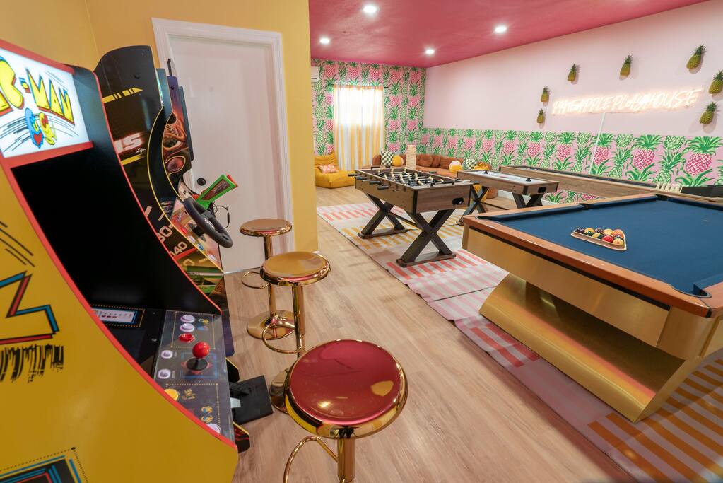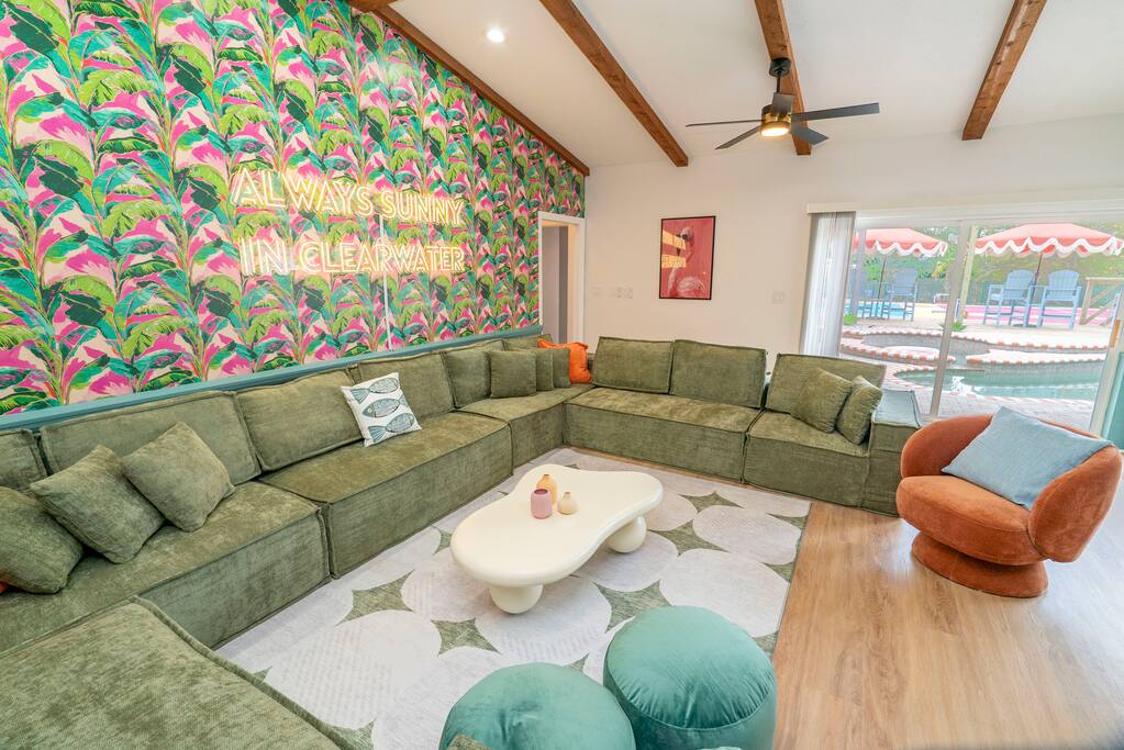 📍10 min to the Beach 📍30 min to Tampa & St. Pete 🌟 Why You Can’t Miss This Place: ☆ Massive Sport Court: 2 Pickleball Courts perfect for tournaments, basketball, futsal, outdoor shuffleboard and all gear ☆ Resort-Style Pool Area: Heated pool (optional heating $40/day), soaking tub (not a hot tub), lounge chairs, umbrellas, hanging egg chairs, bar, BBQ ☆ Theme Park-Like Backyard: Custom Mini Golf, Wood-Burning Fire Pit with Adirondack chairs, Kids Play Structure; Games: Ladder Ball, Giant Connect 4, Bean Bag Toss ☆ Game Room: 3 Arcade Games, Pool Table, Foosball, ShuffleBoard, Air Hockey; Karaoke Machine & Microphone set up, kids Kids Climbing Wall, Nintendo Switch & Games ☆ Entertainment & Tech: 8 Smart TVs with Disney+ & Netflix, Fast Wi-Fi & Work Remote Desk in Primary Bedroom ☆ Family & Pet Friendly: Pack ‘n Play, high chair, kids dining sets, pet-friendly ($150 fee) ☆ Kitchen & Dining: Fully stocked kitchen, 18 person indoor dining table w/additional seating for 6 in the kitchen 🛏️ Sleeping Arrangements • Bedroom 1: King bed with ensuite • Bedroom 2: 4 Twin beds (2 bunks) • Bedroom 3: King bed • Bedroom 4: King bed • Bedroom 5: King bed • Bedroom 6: King bed with ensuite • Bedroom 7: King bed 🗺️ Nearby Things to Do ✦ Clearwater Beach — 10 min: white sand, gentle surf, sunset festival at Pier 60 ✦ Clearwater Marine Aquarium — 18 min: rescued sea turtles, dolphins & otters ✦ Moccasin Lake Nature Park — 10 min: nature trails, boardwalks, wildlife ✦ Cliff Stephens Park — 10 min: biking, frisbee golf, shaded walks ✦ Captain Memo’s Pirate Cruise — 17 min: kid-friendly boat tour with games & dolphins ℹ️ FAQs ➤ Can I bring a pet? Yes — we allow pets for a $150 fee per stay. Please add your pet during booking. ➤ Is the pool heated? Yes — heating is optional for $40/day. Just let us know after booking and we’ll get it set up. ➤ Is there a hot tub? There’s a soaking tub that stays the same temperature as the pool, but no separate hot tub. ➤ Can we host a party? No parties allowed. Bachelor and bachelorette groups are welcome with a $150 additional cleaning fee—just no afterparties, please. ➤ Will there be any staff on the property? Our pool and yard team stops by Mondays and Fridays. Let us know in advance if you’d prefer to reschedule. Note About Pool Heating: Our pool is equipped with a heater and we’re happy to warm it for your stay. Because the pool is fully outdoors, the water temperature is influenced by outside conditions. Cooler nights, wind, and seasonal weather can limit how much heat the pool can retain. Please note: pool heaters do not make the water “hot-tub hot.” They raise the temperature to a more comfortable level, but Mother Nature ultimately determines how warm the pool can get. If you’ve added pool heating to your reservation and find the temperature isn’t comfortable for swimming due to weather, please reach out and we’re happy to discuss a refund.