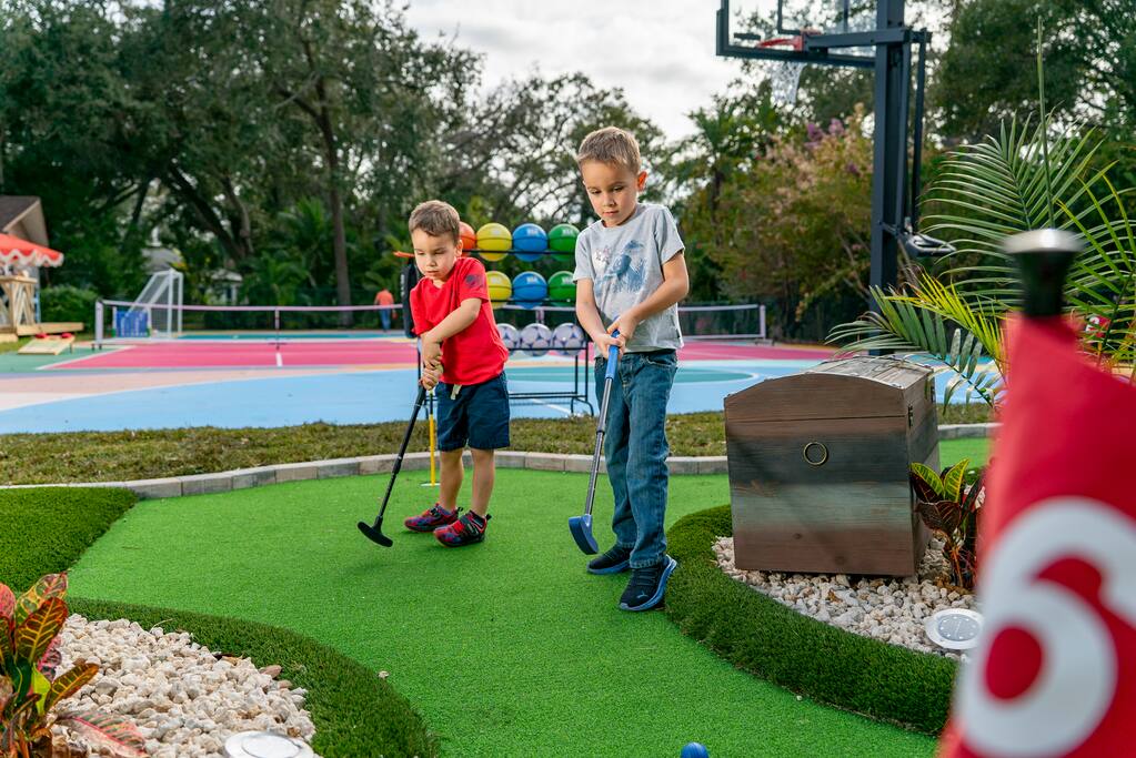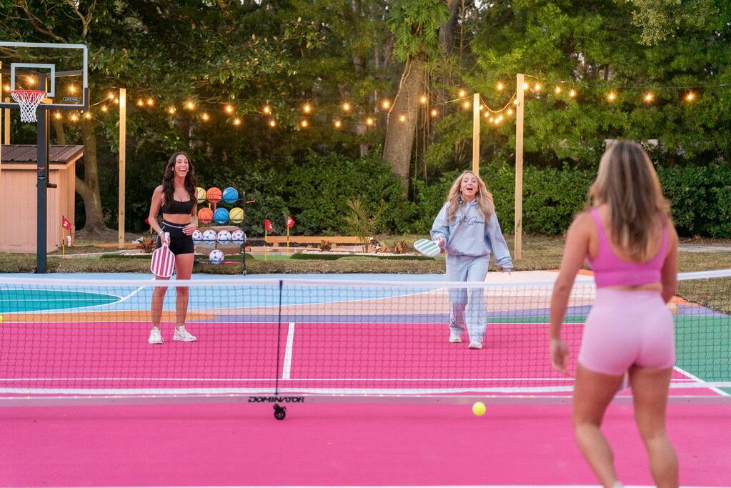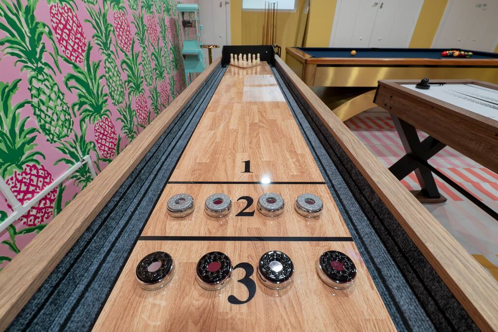 Welcome to Cabana Royale - a professionally designed luxe pickleball resort in Clearwater, FL. This 5000 sqft, 1-acre luxury home sleeps 22 (7BR/5BA). Outside: heated pool + soaking tub, 2 full-size pickleball courts, futsal, basketball, custom mini-golf, fire pit, kids play structure, & massive poolside movie theater. Inside: game room (pool, foosball, air hockey, arcade, shuffleboard, karaoke, popcorn machine), poker table, Nintendo Switch, 8 Smart TVs. Family gear: Pack ’n Play & high chair.